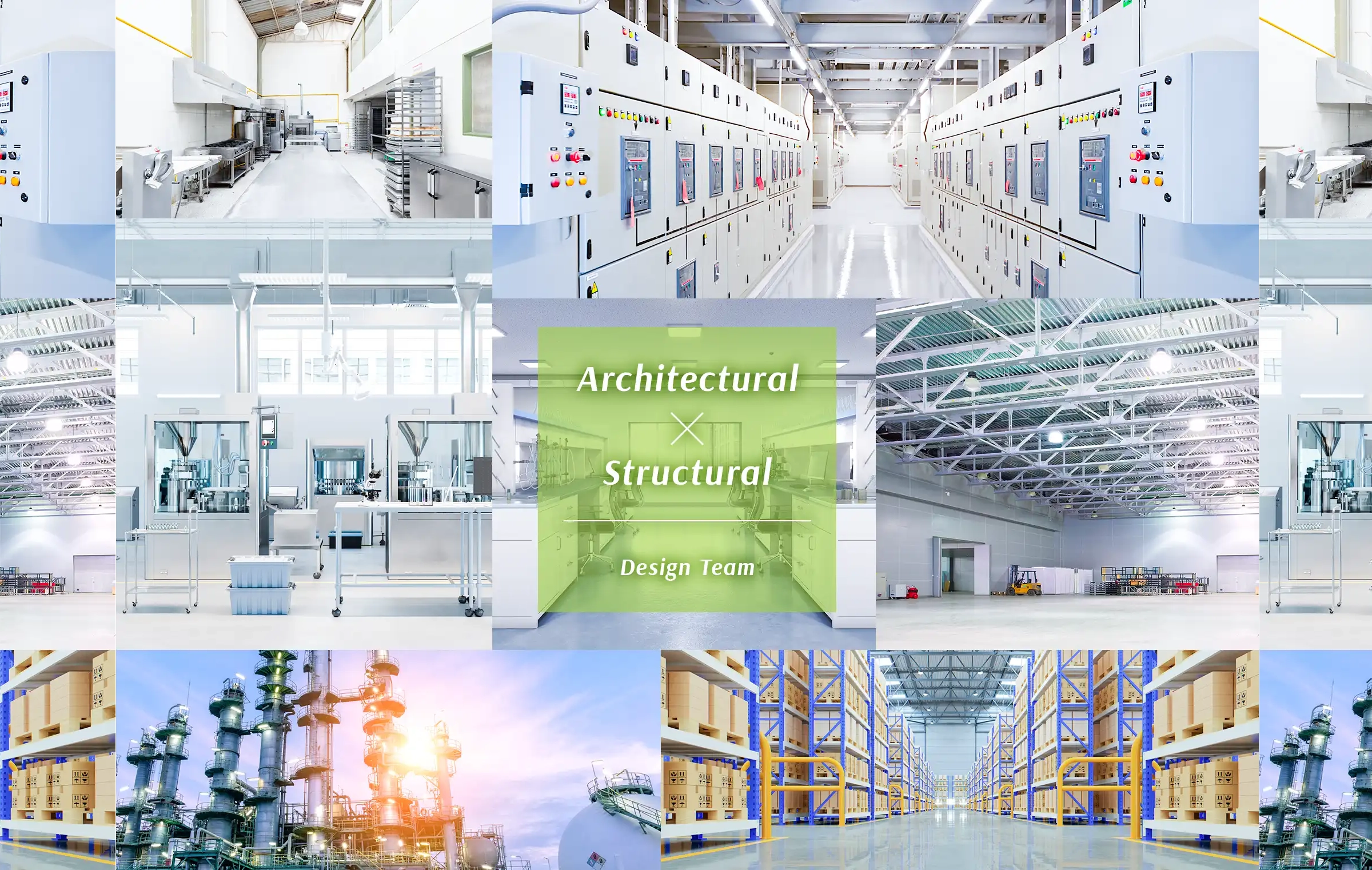 当社では、生産施設を伴う研究所や工場及び物流施設を中心に、事務所ビル等の各種建築物の設計・工事監理業務を行っています。